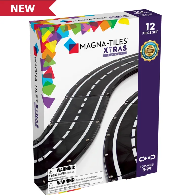 MAGNA-TILES® fans have spoken! Most requested and highly anticipated, the new MAGNA-TILES® XTRAS Roads 12-Piece Set allows little ones to create countless road configurations for their favorite toys and vehicles.