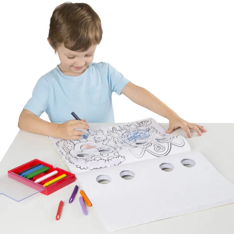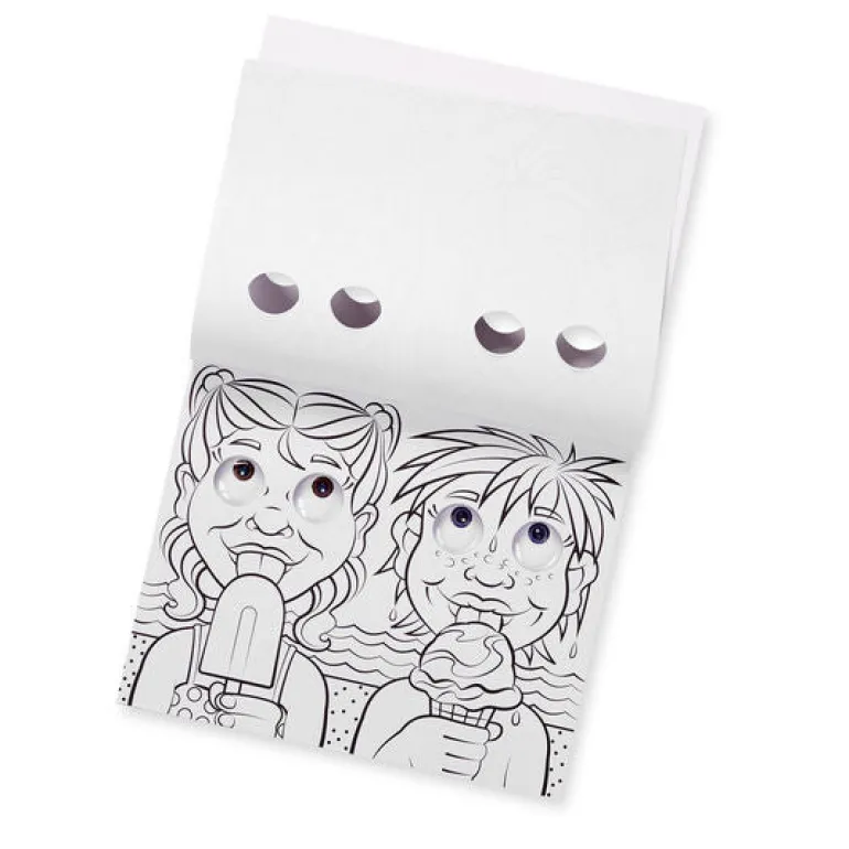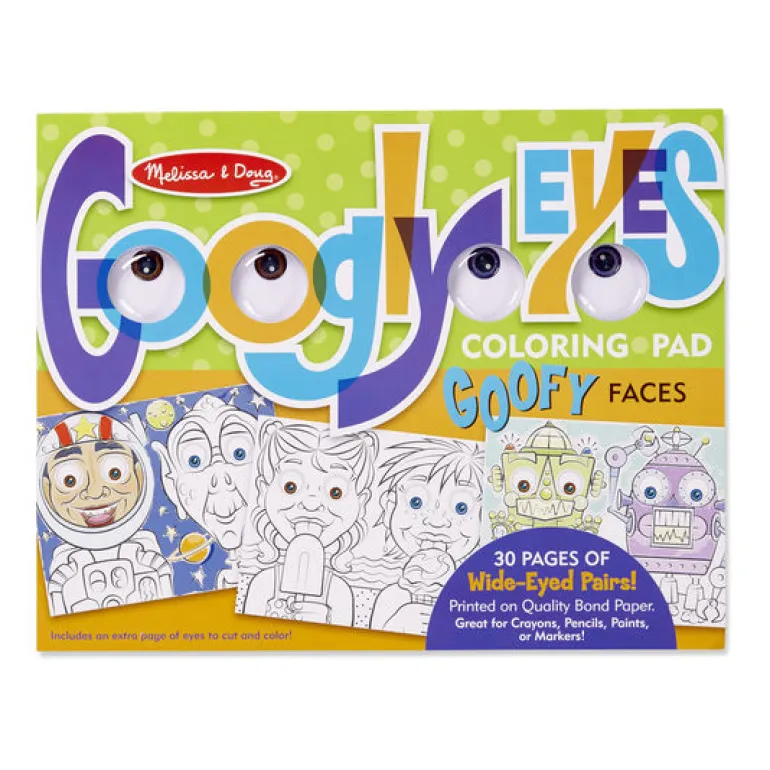 - Goofy faces-themed coloring pad with googly eyes that show on every page