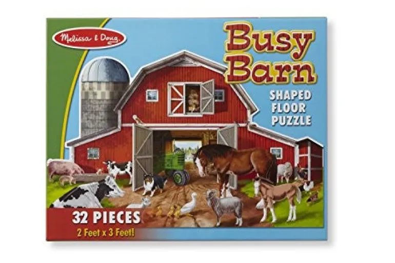 Who can build the big red barn? A classic tractor peeks from behind the barn door, and animals graze and gather in the barnyard in this three-feet-wide shaped floor puzzle. The 32 oversize pieces are great for children of all ages–from pre-schoolers just learning to tackle jigsaws to older kids who enjoy playing “I spy” games cantered around the appealing crowd of lifelike animals.