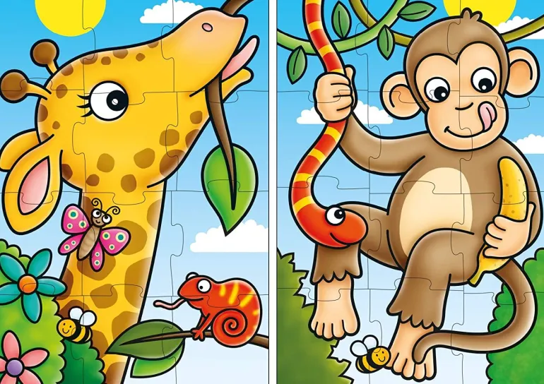 Piece together the friendly jungle animals with this first collection of jigsaw puzzles. With two 12-piece puzzles in one box, First Jungle Friends is a great way to support early learning skills for children from the age of two. The combination of Orchard Toys distinctive illustration style coupled with large, chunky pieces which are perfect for little hands to hold, make these collections the perfect introduction to jigsaw puzzles.