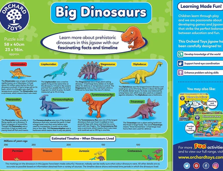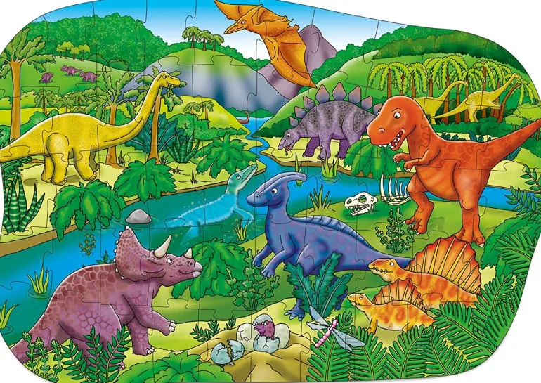 This beautifully illustrated jigsaw depicts a wide array of dinosaurs, from a triceratops to a t-rex, in a lush, prehistoric setting. Children will love talking about the different dinosaurs they can spot!