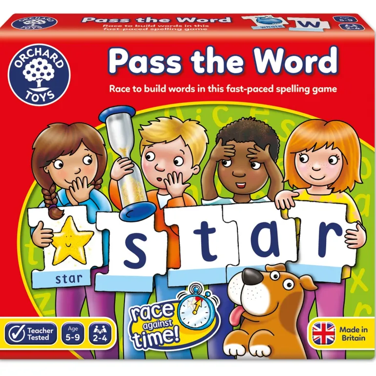A fast-paced game which makes spelling fun! Race against the timer to put together as many words as you can, but try to be quick…when the time runs out, the letters have to be passed on to the next player! Good memory skills are the key to winning in this fun game. The winner is the player with the most completed words at the end of the game!