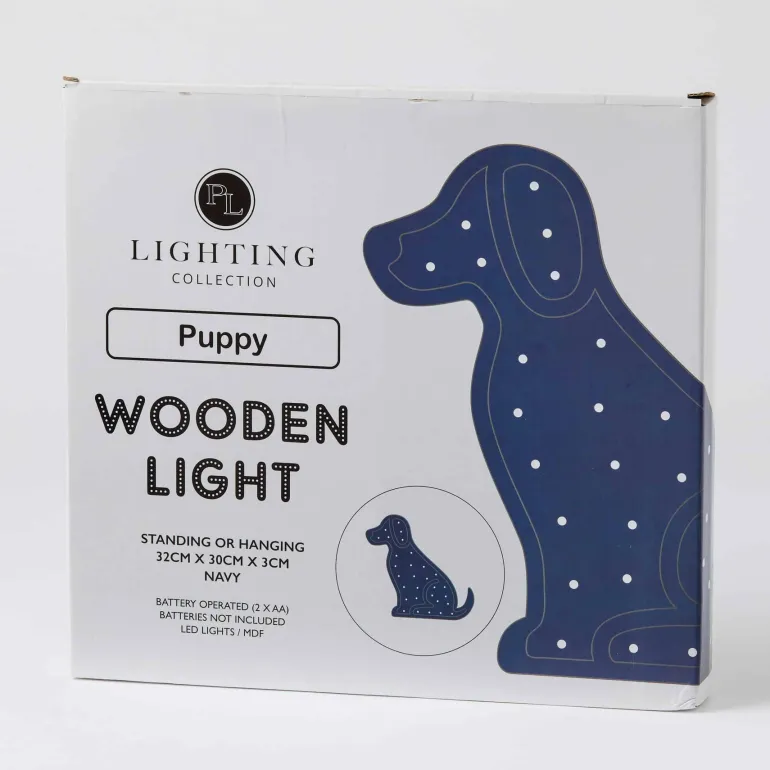 This stunning, high-quality Puppy Wooden Light, with 30 LED lights, will create a fun and enchanting ambiance in any room. A decorative and functional piece, this light can be hung on the wall of a nursery or bedroom and act as a glowing companion for little ones, or simply place it on a shelf or desk to add warmth and wonder to your home.