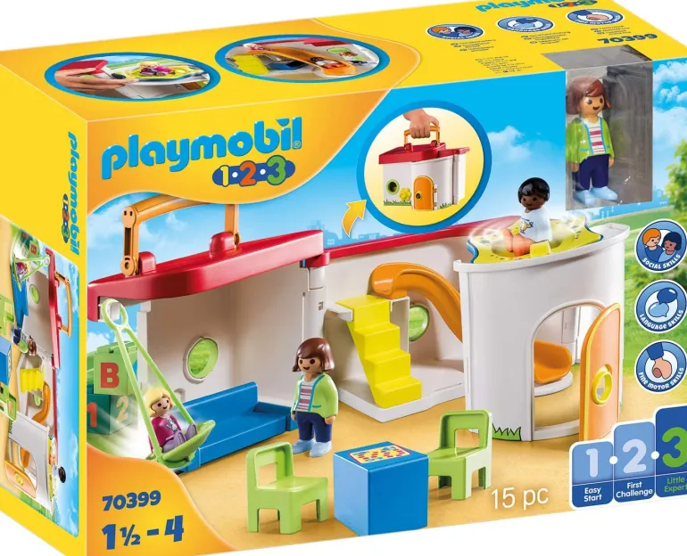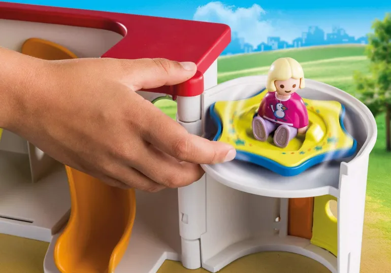 There is always something fun going on at the My Take Along Preschool! With a bright and colorful design and large, rounded pieces, this PLAYMOBIL 1.2.3 Stage 3 – Little Expert set will help your toddler develop fine motor, social, and language skills as they embark on preschool adventures. The kids love playing with their friends, racing down the slide, riding on the spinning saucer and much more. The preschool building doubles as a travel-ready case, perfect for on-the-go fun! Simply store the accessories inside to keep safe for the next adventure.