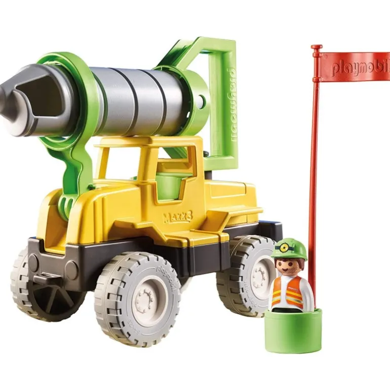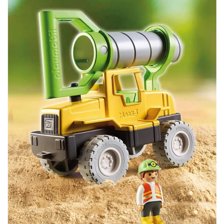 Set includes one construction worker sand truck with sand drill and basket with flag Dimensions 4 3 x 2 x 9 in (LxWxH)