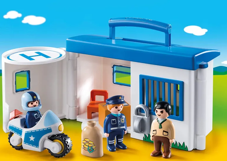 Set up your police headquarters with the Take Along Police Station! With a bright and colorful design and large, rounded pieces, this PLAYMOBIL 1.2.3 set is ideal for toddlers.