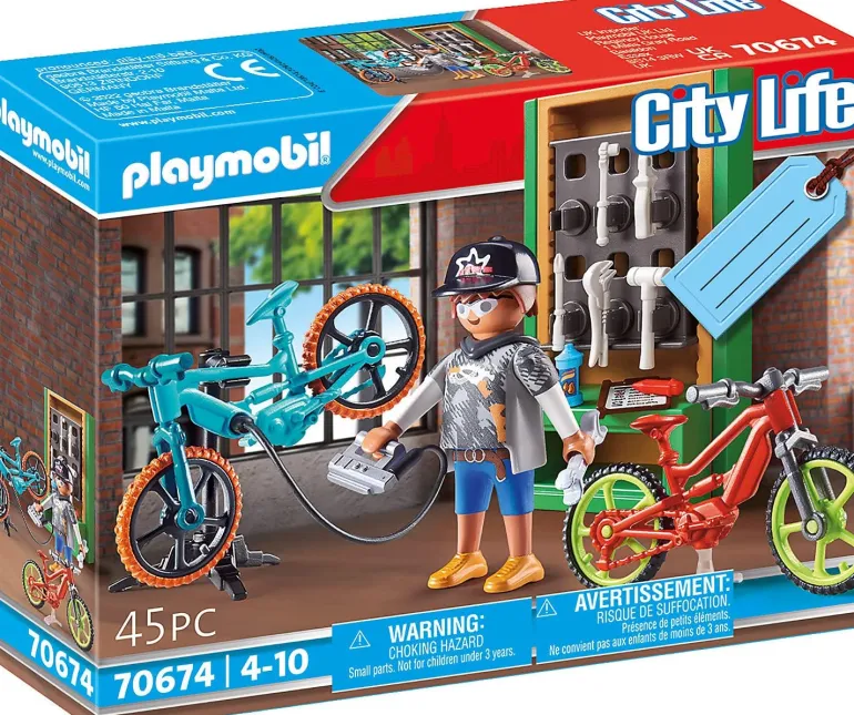 The set’s gift packaging makes it easy to personalize! Set includes one figure, two bikes, tool cabinet, tools, and other accessories.