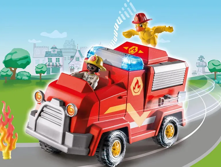 - Freddy Fire and Ducklas are ready to put out the blaze with the fire brigade vehicle