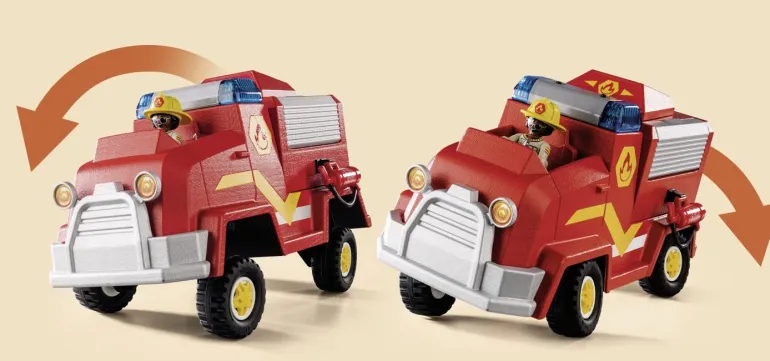 With integrated light and sound effects. The innovative tilt steering ensures great driving fun. Includes lift case with water cannon and water arrows for fighting fires, plus storage compartments for additional equipment.