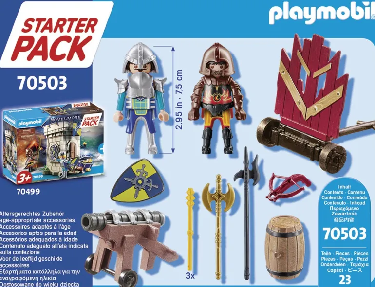 Starter Packs – the perfect introduction to PLAYMOBIL theme worlds! In the Novelmore Knights’ Duel, these enemy knights are ready for to determine a winner once and for all. The functioning cannon and mobile shield bring the action to life.