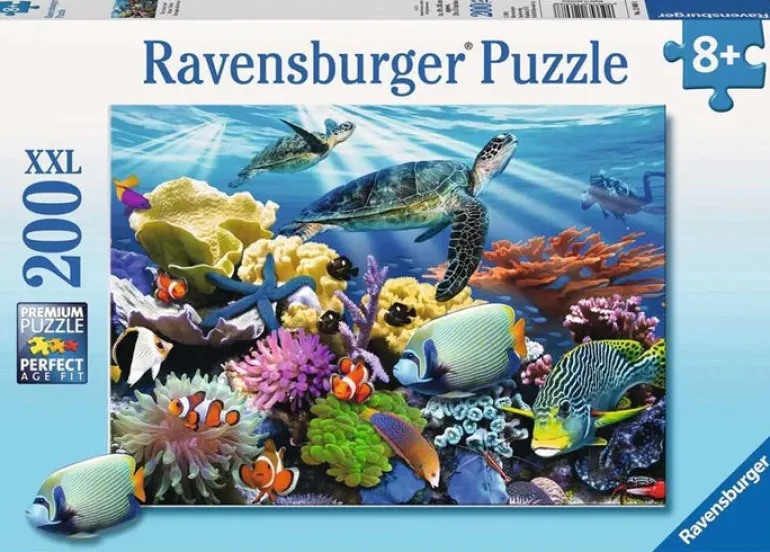 Nature and ocean-loving kids will delight in creating this Ravensburger Ocean Turtles 200 piece jigsaw puzzle. From a playful and colourful octopus to a school of leaping happy dolphins our Ravensburger underwater oceans and seas collection is everyone’s favourite.