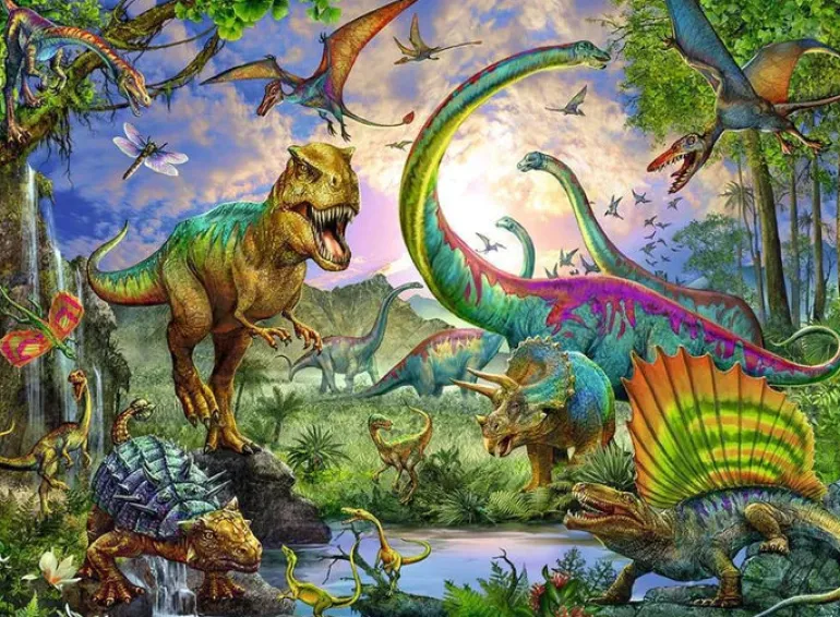 This beautifully coloured Ravensburger Realm of the Giants Jigsaw Puzzle 200pc is a perfect size for young children who will enjoy challenging themselves in the land of make believe. This Ravensburger Realm of the Giants is an action packed scene of prehistoric dinosaurs, volcanoes and even flying dinosaurs. An educational and fun activity the whole family can enjoy that will enhance creativity, problem solving and motor skills as they have fun and play.