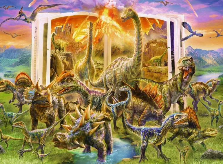 Assemble the high-quality pieces and release a Dinosaur fantasy as the creatures crawl out of a dinosaur encyclopedia! This 300pc puzzle is great for children or adults who prefer slightly larger pieces.