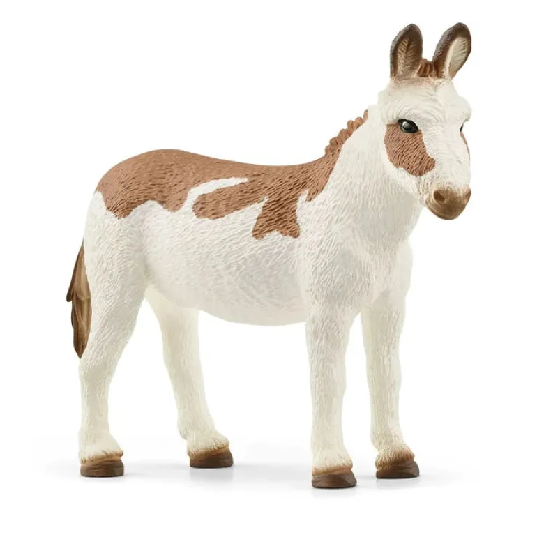 Schleich’s American Spotted Donkey is a great model of a uniquely coloured donkey. This farmyard friend features a beautifully textured coat which is painted white with brown patches of colouring on its back and face, and tall ears. Add this awesome donkey figurine to your model animal collection and have some fun grazing in the fields and imaginatively playing in your fun farm world.