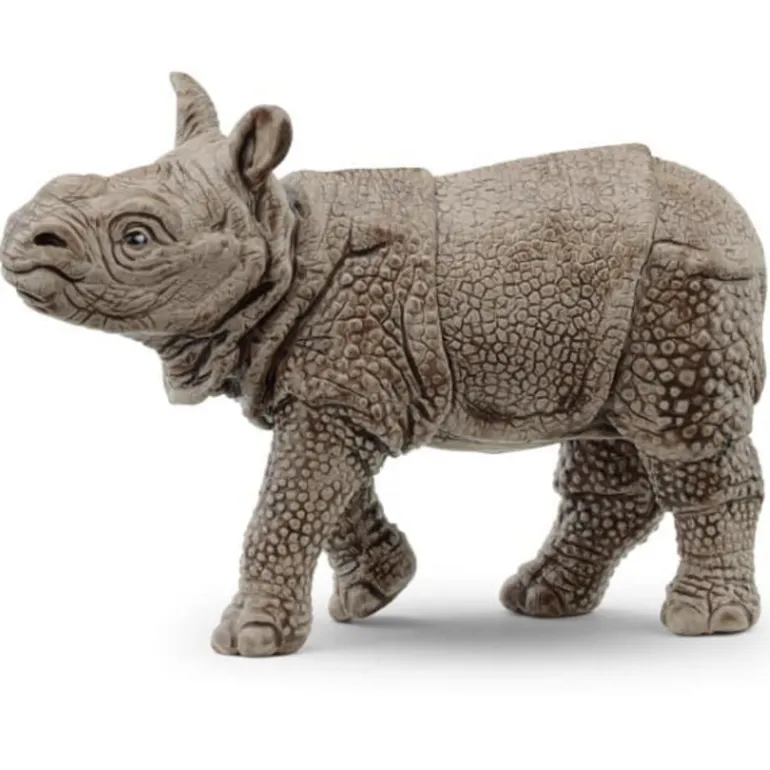 The Schleich Indian Rhinoceros Baby model is sculpted in a walking position, looking ahead. Its body is painted entirely grey brown with armoured spotted detailing all over its body. This beautiful young rhino figurine is ready to play in an Indian adventure.