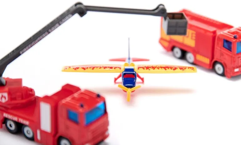 This greatly simplifies rescues, even from great heights. For this, the fire truck provides support by fighting the fire at the incident. Both vehicles have high-speed wheels, so they can race to the incident at lightning speed. For transport and monitoring from the air, an aircraft in fire brigade colours is also included. With folding wings and a rotating propeller, this rescue aircraft is an essential partner for difficult deployments.
