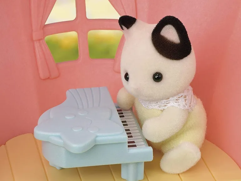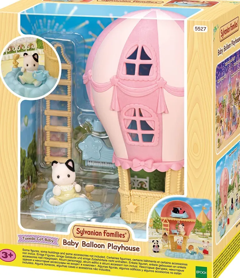 The Baby Balloon Playhouse is a playroom for baby figures in the shape of a balloon. This playroom has a star piano and an airplane bed for taking naps.