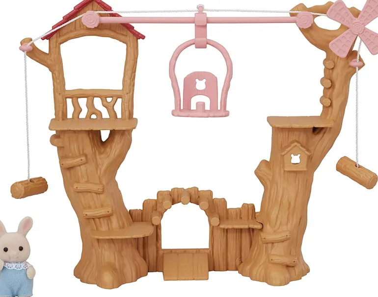 Sylvanian Families Baby Ropeway Park allows one baby figure to ride the gondola. Pull the end of the rope to the left or right to move the gondola.