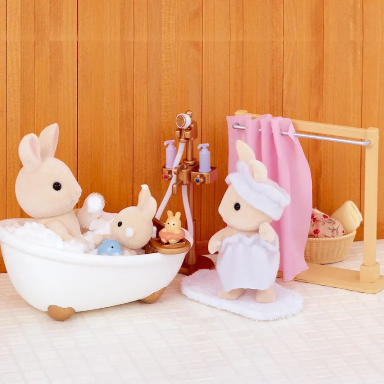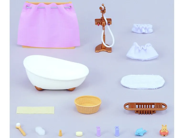 It comes not only with shampoo and conditioner but also with toys, a bathroom basket, towel skirt and children’s headband. A bath like this makes bath time fun.