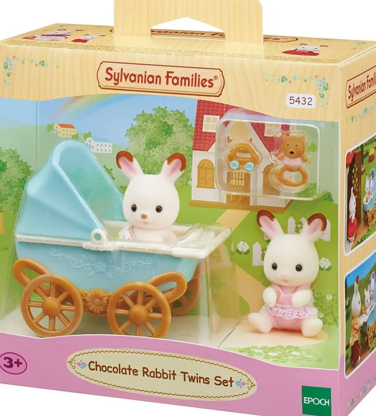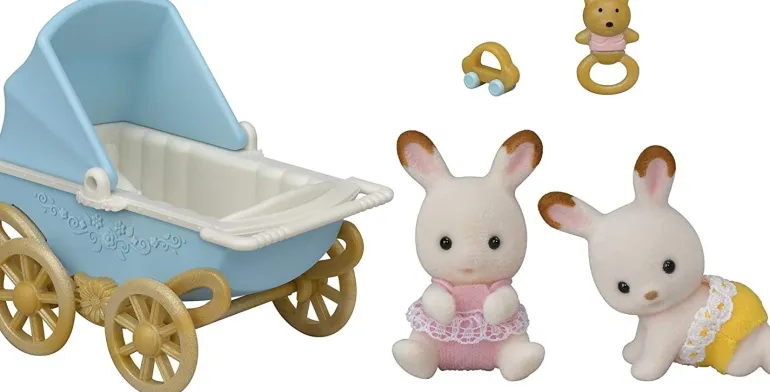 Kabe and Breeze Chocolate Rabbit twins love riding in their carriage. The carriage is large so the twins can ride together. They enjoy it when their Father takes them outside for a walk. Set doesn’t include Chocolate Rabbit Father.