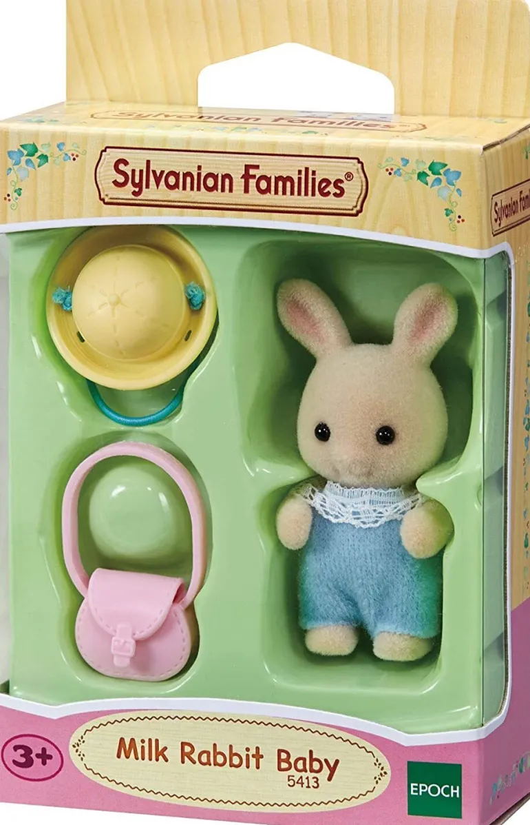 Meet Henry Periwinkle, the Milk Rabbit Baby. Henry comes complete with hat and bag.