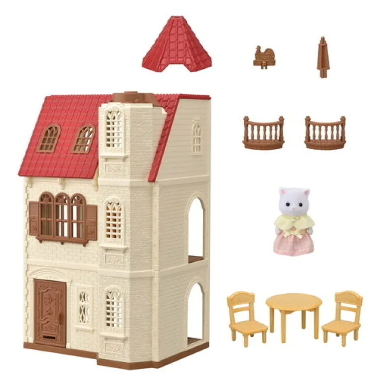 The Red Roof Tower Home set comes with Persian Cat Girl, a table and a set of chairs.