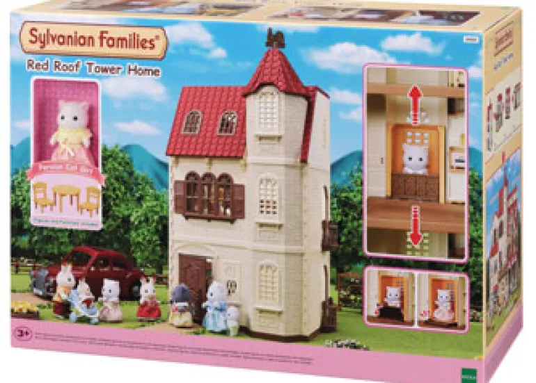 The Red Roof Tower Home lets you turn the weather vane to move the lift up and down. The doors will automatically open and close when it reaches each floor.