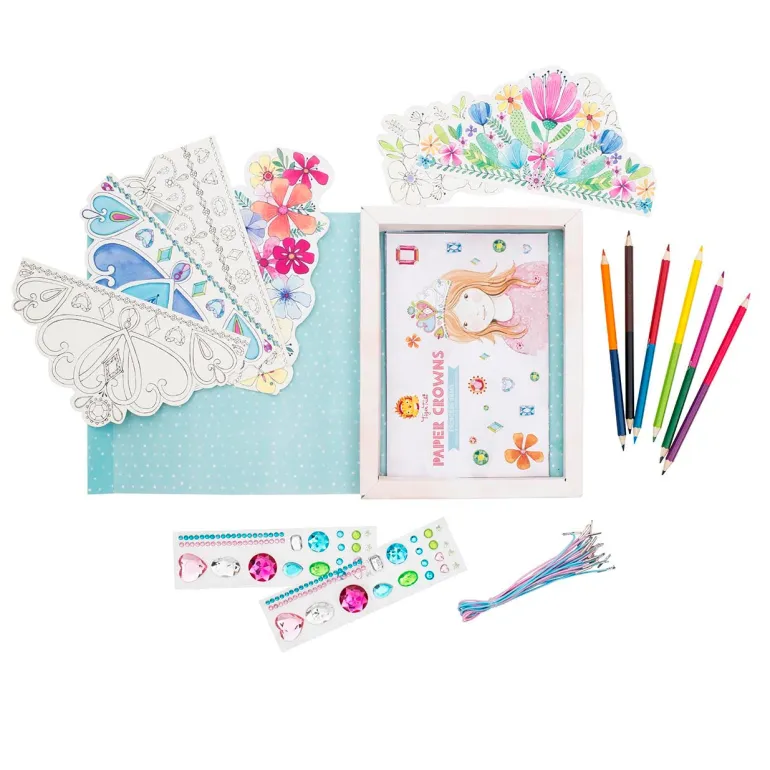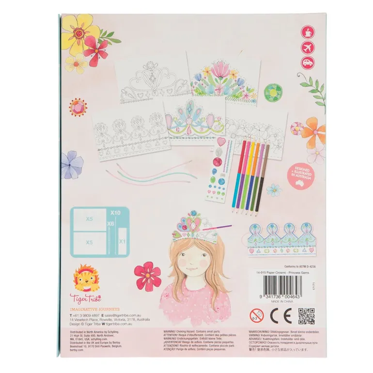 Create your own jewelled masterpiece with Tiger Tribe’s Paper Crowns set. Colour and decorate gorgeous crowns, tiaras and floral head-pieces with glittering gems and jewels — a must have for any little princess.