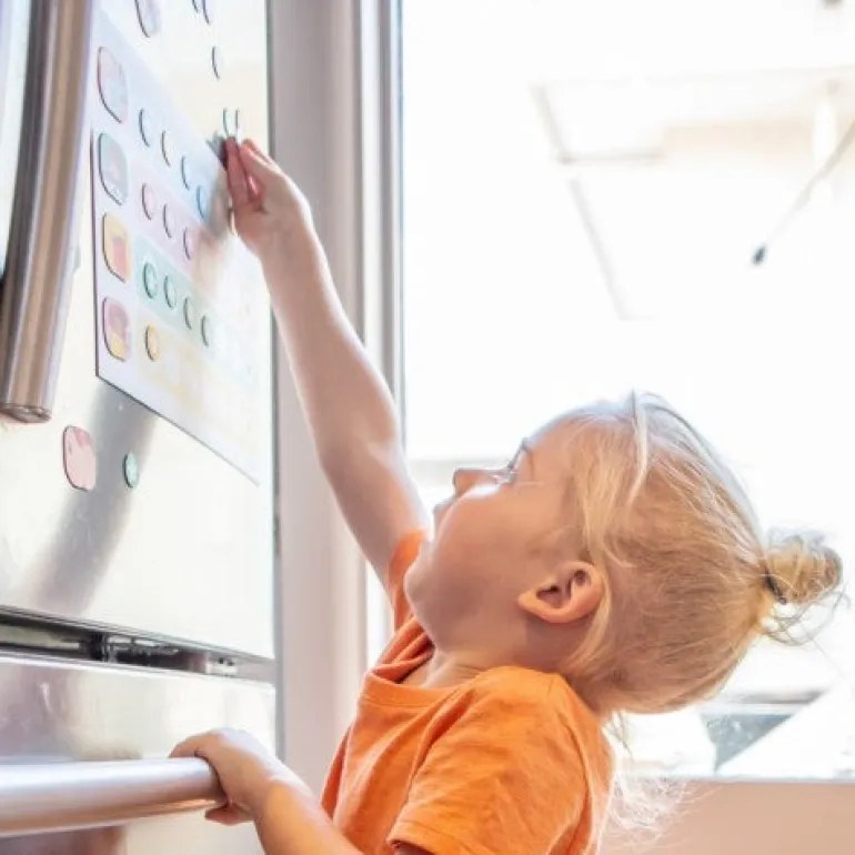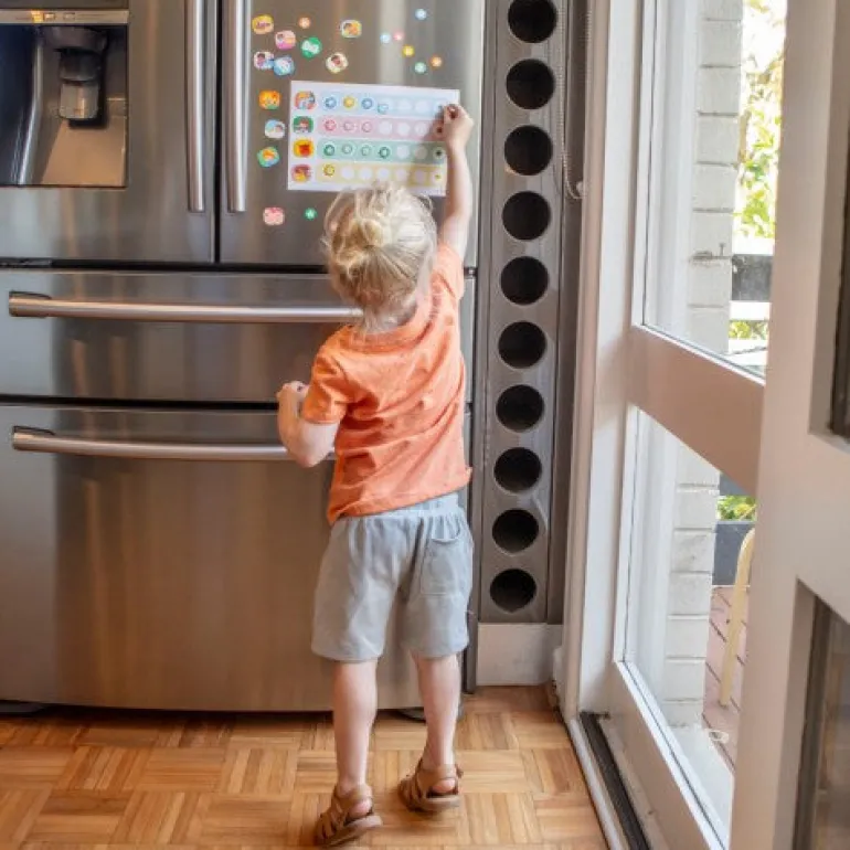 The chart can be customised for tracking household tasks like unpacking the dishwasher and cleaning teeth or rewarding positive behaviours including sharing and listening. The chart is also magnetised so can be easily used on fridges and white boards.