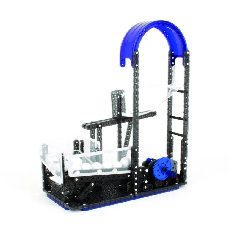 You shoot, you score! Introducing the VEX® Robotics Hook Shot Ball Machine by HEXBUG® – a kinetic art mechanism that blends the intrigue of sophisticated machinery with the excitement of sports science. Spin the hand crank to wind up the elastic powered striker arm to launch balls through the loop system and sink them in the return basket.