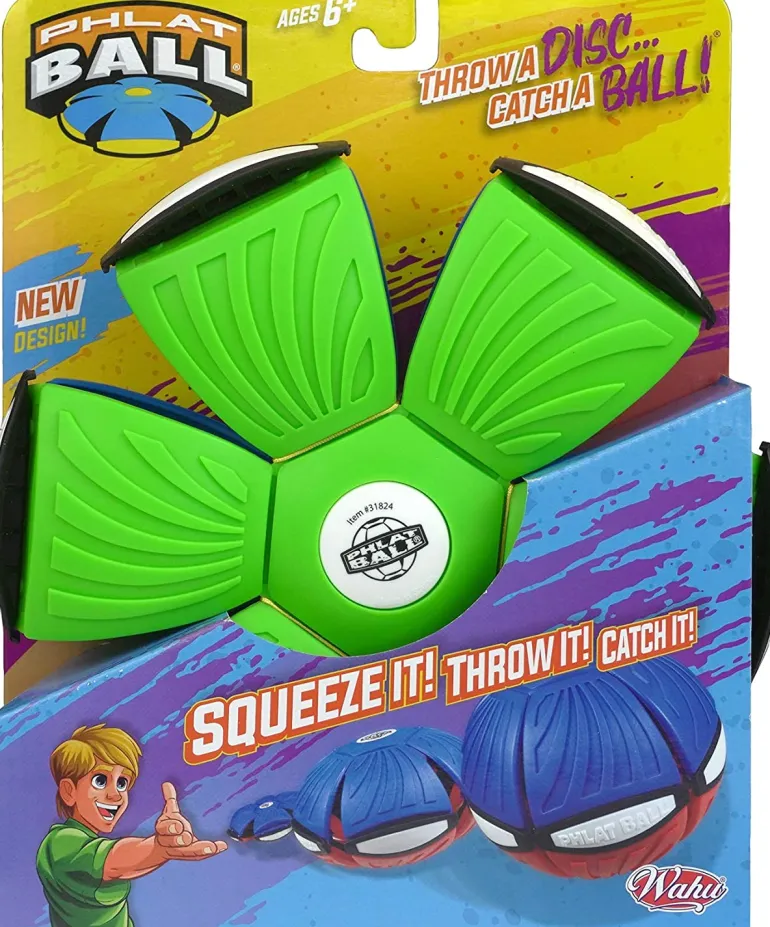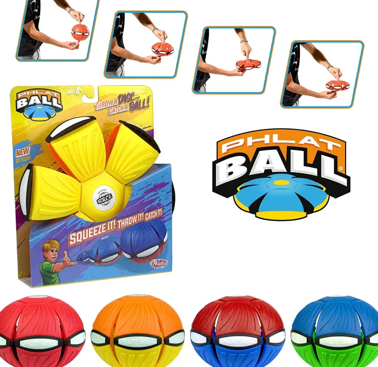 - Phlat Ball is a unique sports toy that transforms from a frisbee to a ball when thrown! It’s like playing with a frisbee ball!