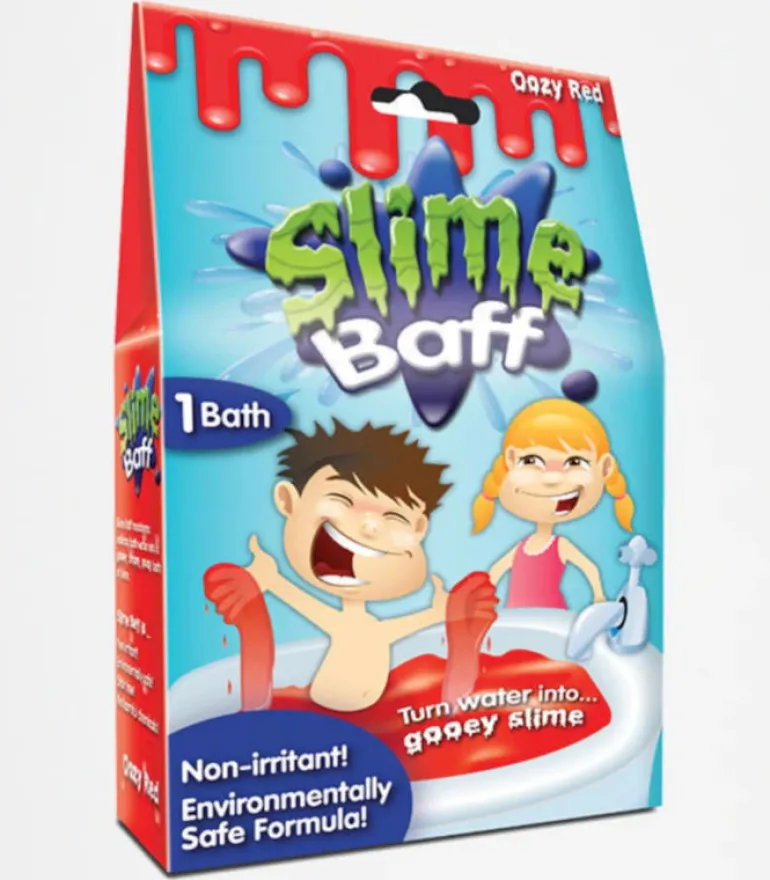 Make bath time fun with Slime Baff! Slime Baff is a powder that turns bath water into a gooey slime.